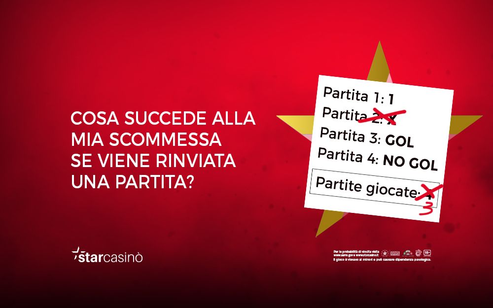 Andiamo ad attingere direttamente al regolamento dell’AAMS che fa riferimento a bookmakers come StarCasinò e per prima cosa facciamo notare che l’atteggiamento per le partite rinviate e per quelle sospese è lo stesso, a seguito di quanto espresso nell’art 6 comma 6 del Decreto Ministeriale numero 111 del Primo Marzo 2006.